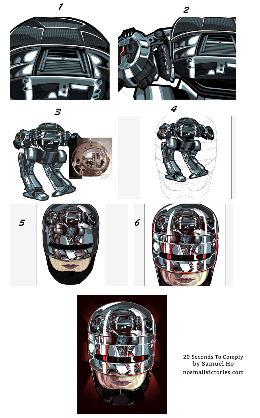 Here's a lil progress image for those interested! I initially drew ED209 then shifted it on to the Robocop Helmet.