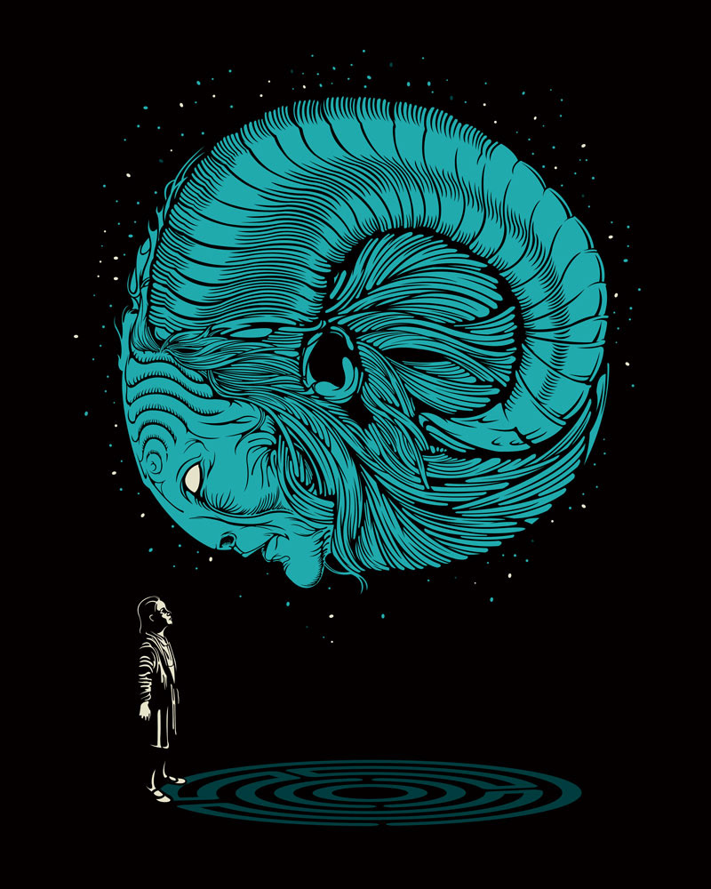 For Hero Complex Gallery's "Imagined Worlds" show in LA. I created a piece in tribute to (one of my favorite directors) Guillermo del Toro's "Pan's Labyrinth." His work has always been imaginative and inspiriing to me. This movie is very dark yet also retains a somewhat fairy tale essence.