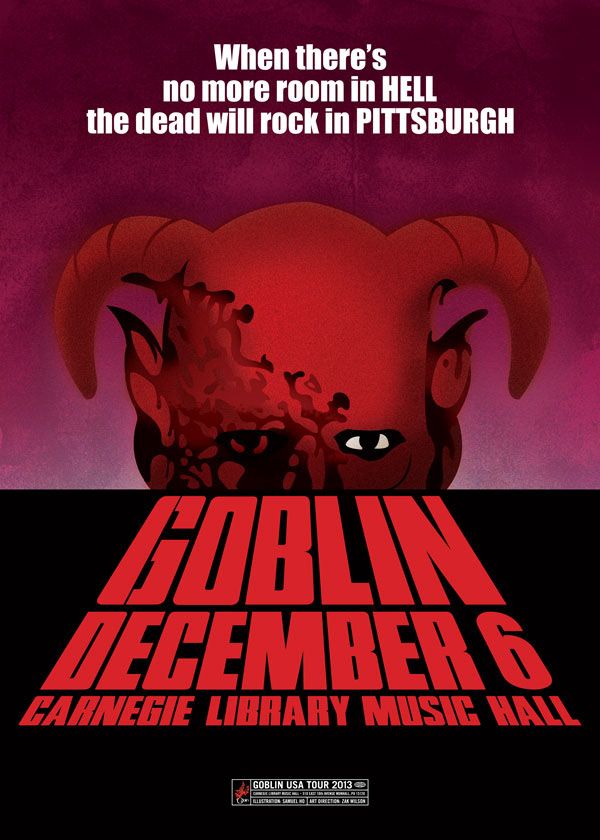 My second gig poster for the band Goblin's North America tour. Since they did the soundtrack to Dawn of the Dead and the movie was shot in Pittsburgh it was only fitting that the poster be an homage.