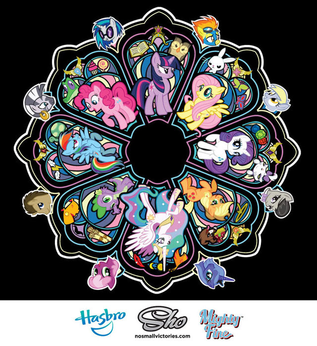 I teamed up with Mighty Fine and Hasbro working with the fun and lovable My Little Pony: Friendship is Magic series to create a licensed piece of art called the "Rose Window." Available in Men's Tees and Women's Tees and soon an art print.