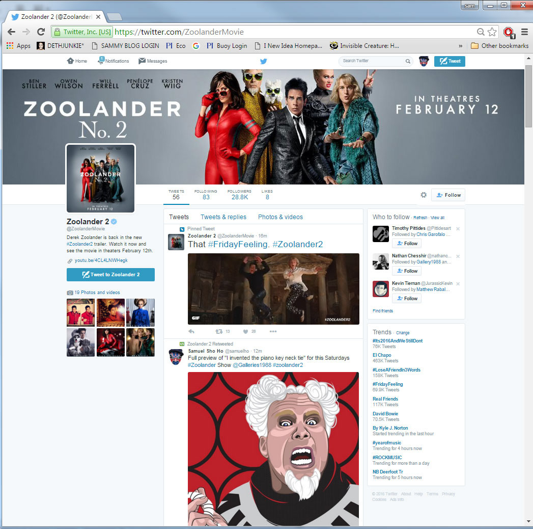 humbled to have my piece featured on the official Zoolander 2 twitter.