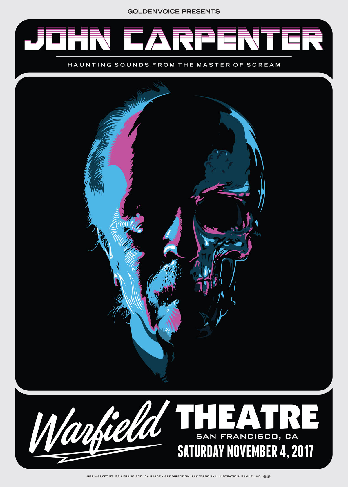 If you know anything about horror then you know the name John Carpenter! I was honored to illustrate a gig poster for his live show at the Warfield in San Francisco as apart of his North American tour performing live music from his classic films.