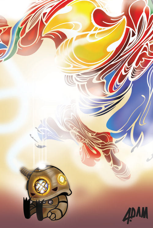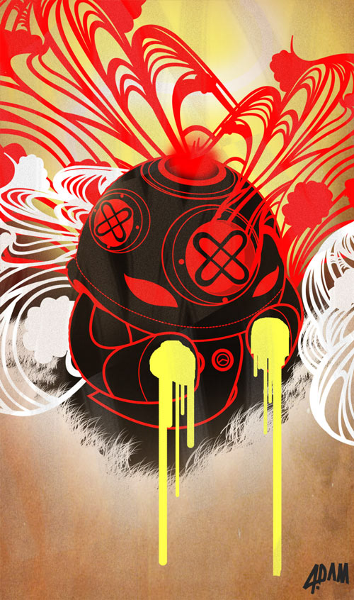 A few years ago I created a whimsical short story that highlighted the journey of a character having his world flipped upside down when he discovers a whole new sense of the term reality. Using a Mark 5 diving suit as a symbol of the constraints of the human body, he soon discovers that his dreams are where he can truly live without any limitation and that his reality is where he must fulfill his fundamental purpose. Done in a children's book style under the nom de plume of A. Dam, (which comes into play of the story) the illustrated short challenges common concepts of religion, spirituality and science.