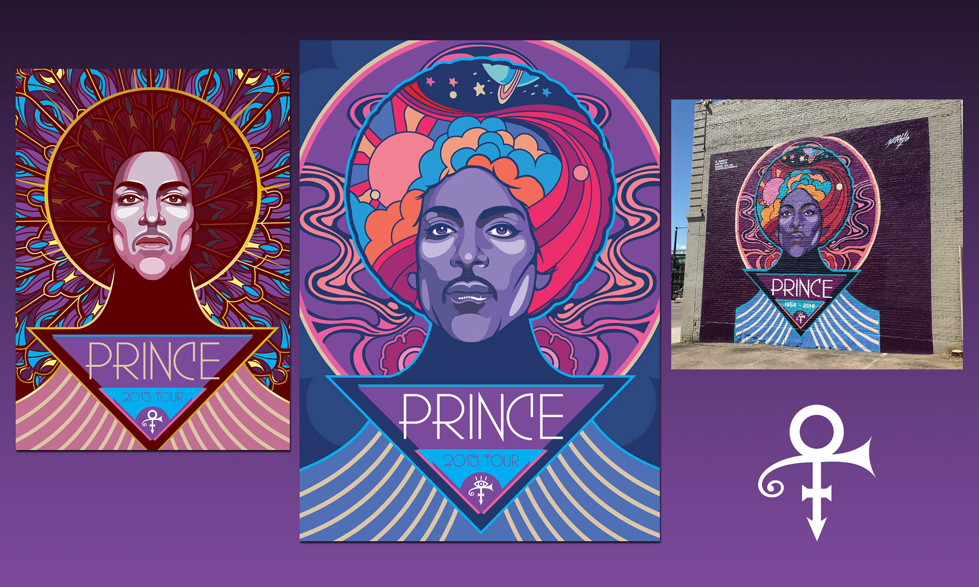 This was an unused proposal poster for the Prince world tour. This would later be requested to be used in a memorial mural for the legendary rocker.