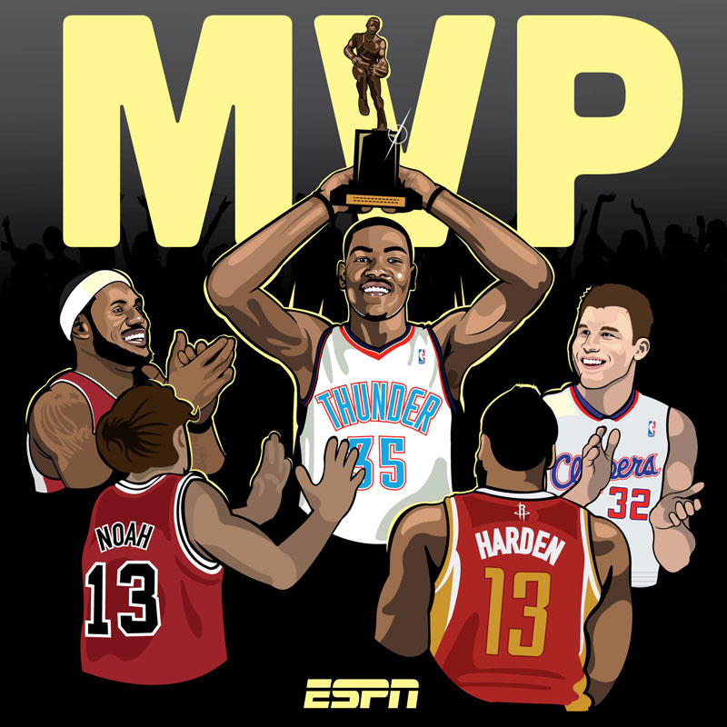 Editorial piece featuring the NBA MVP of 2014 Kevin Durant. Also the top 4 runner ups. Link to ESPN FB http://goo.gl/lbKefr