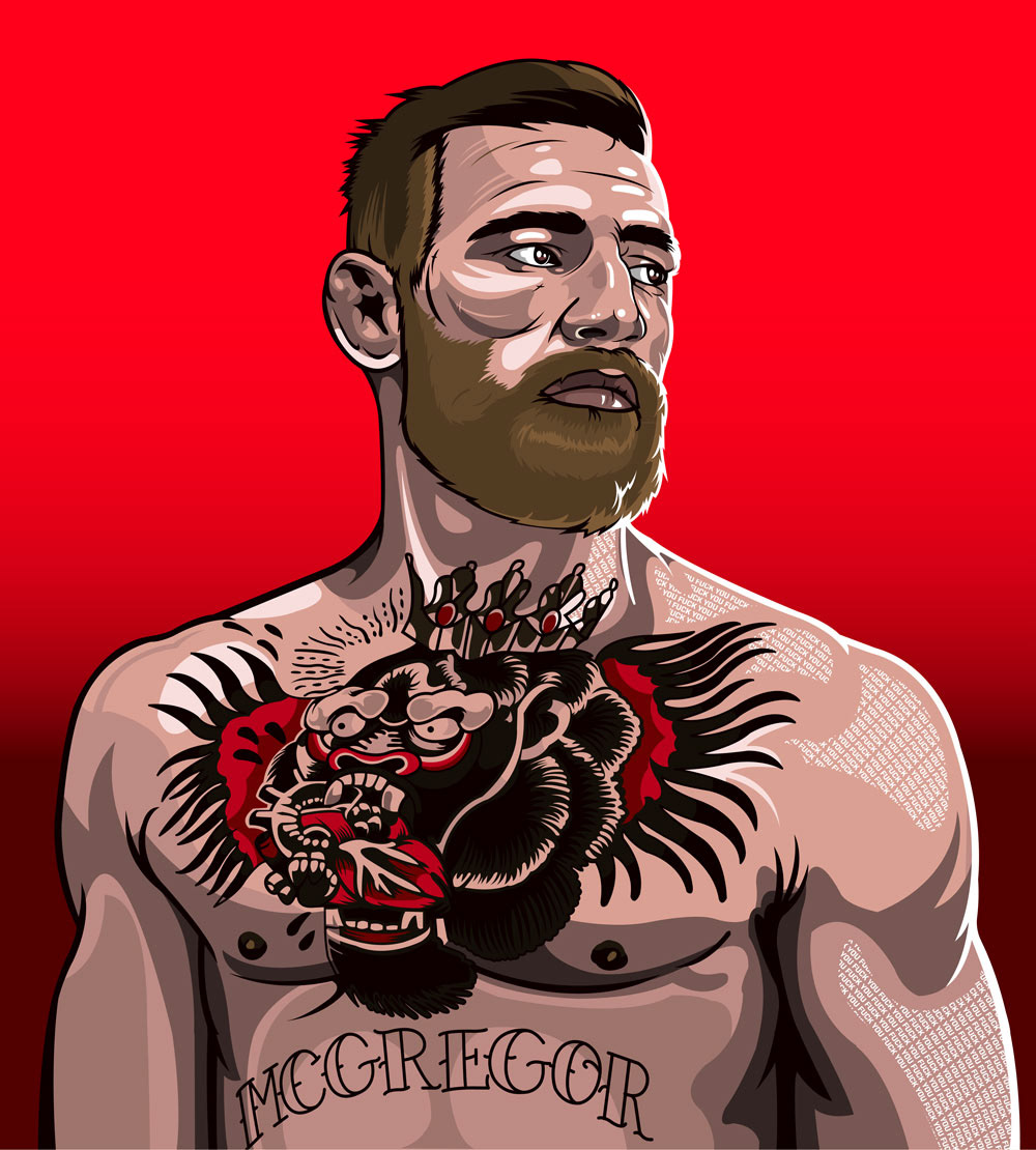 I love MMA and combat sports so I figured would choose my next muse from the intensely upcoming hyped fight between Conor McGregor and Floyd Mayweather Jr. For a change of medium, I worked a little in Aftereffects to animate my piece just to give it a little extra presence. Check below GIF for original.