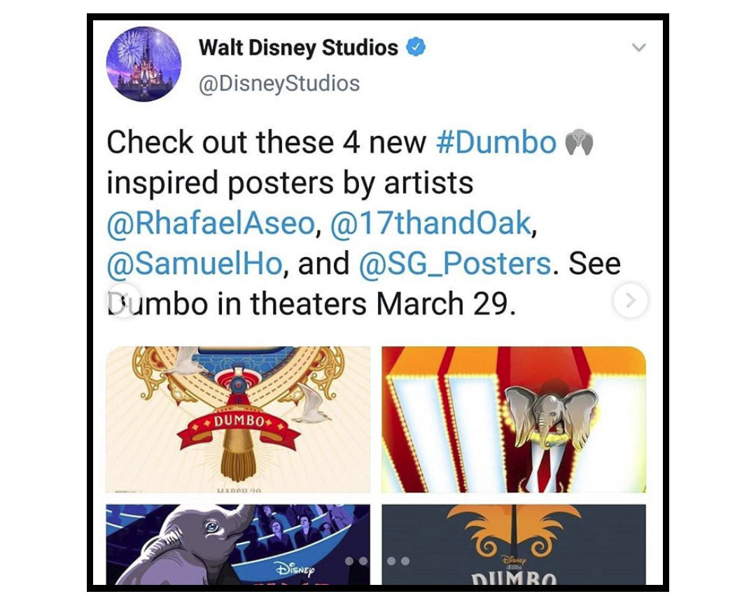 In collaboration with Poster Posse and Disney, I was commissioned to create a promo poster for the live action remake of the Disney classic "Dumbo." The poster was used in promotion throughout social media, theater promotions and was printed in full size for the Hollywood premiere.