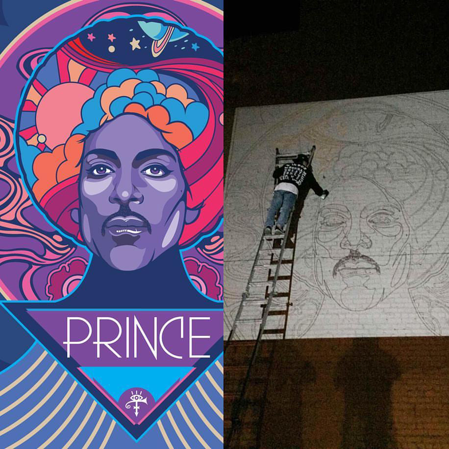 UPDATE: due to some incredible support from this post. We have teamed up with BOA design group (https://www.behance.net/G_blessedmc3ed) to take the Prince design to a larger than life mural to Denver Colorado's premier Club Vinyl. We are grateful to have teamed up for this collaboration to give Prince this larger than life tribute!