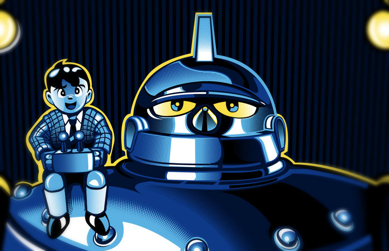 For LTD Gallery's "Saturday Morning" Show, highlighting classic morning cartoons, I decided to tackle a classic story of a boy and his robot: Tetsujin 28 aka Gigantor. If you are in the Seattle area please check out the gallery www.ltdartgallery.com