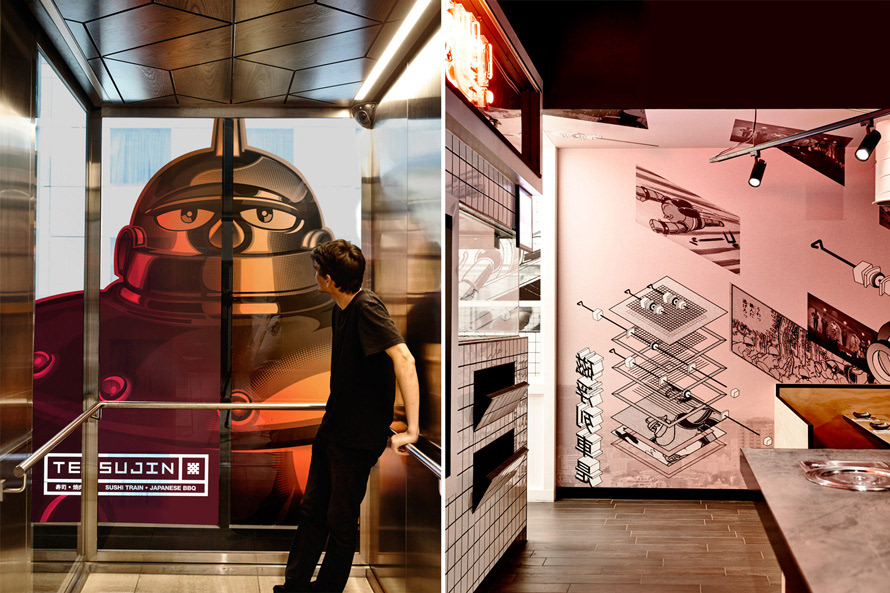 UPDATE: The piece was selected to be a contribution to a modern Japanese restaurant in Australia called Tetsujin. Here is an insitu photo of the larger than life piece in the elevator. Photo cred Principle Design UPDATE: Principle Design has won Gold for this design at the 2016 Melbourne Design Awards!
