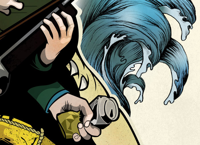 "The Mighty Quint" a collaboration project with Radcastle aka Rachel Rivera for the Hero Complex Gallery's "Smile, You Son of a Bitch" art tribute show to Jaws, benefitting Pangeaseed. Go to Hero Complex Gallery for details.